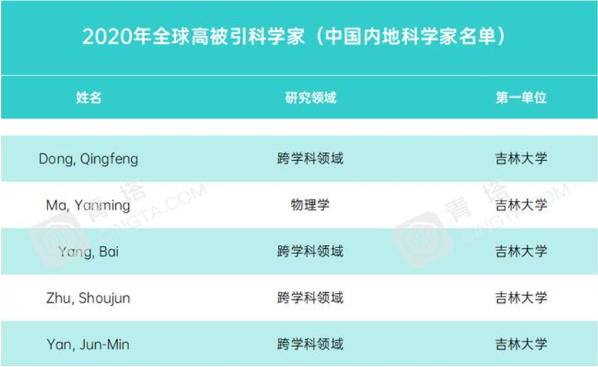 2020年,在物理学科“高被引科学家”榜单中共有来自国内10所高校、科研院所的18位学者入选。马琰铭院长再次入选物理学领域的高被引科学家。这也是马琰铭院长继2017、2018、2019年后,第四年入选物理学科“高被引科学家”榜单。