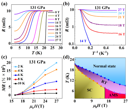 图:典型压强下单质钛中的反常金属态表征以及温度-磁场相图