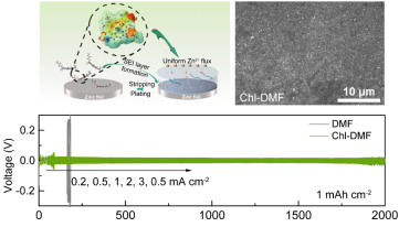 新型电池物理与技术教育部重点实验室王晓峰教授团队在锌离子电池研究方面取得重要进展,相关成果以“Remodeling Zinc Deposition via Multisite Zincophilic Chlorophyll for Powerful Aprotic Zinc Batteries”为题发表在国际期刊《Nano Letters》上。