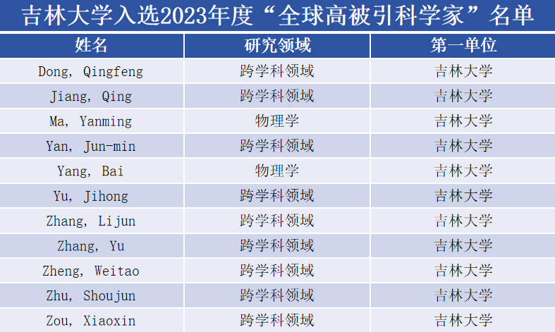 2023年11月15日,科睿唯安发布2023年度“全球高被引科学家”名单,遴选全球高校、研究机构和商业组织中对所在研究领域具有重大和广泛影响的顶尖科学人才。来自全球67个国家和地区1300多个机构的6849名科学家入选2023年度名单。中国大陆地区今年入选人数排名全球第二,共有1275位学者入选,入选人数较去年增长9%。我校共有11位学者入选。