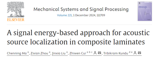 崔志文课题组采用任意分布的传感器阵列和信号能量,实现了复合材料板的声源定位。相关研究成果以“A signal energy-based approach for acoustic source localization in composite laminates”为题发表于《Mechanical Systems and Signal Processing》上。