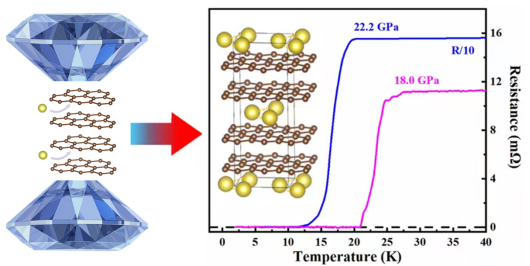 近日,字母圈 高压与超硬材料全国重点实验室王洪波教授等人在新型碳基超导体研发方面获得新进展。自从发现超导电性以来,新型高温超导体的探索一直是凝聚态物理与材料科学领域的研究热点。低维度长期以来被认为是促进高温超导的重要因素。石墨插层化合物(graphite intercalation compounds, GICs)作为典型的二维材料体系,其独特的电子结构和可调控的层间相互作用,使其在探索高温超导机理与新型超导材料方面备受关注。然而,尽管经过多年的努力,石墨插层化合物中的超导转变温度最高纪录仍停留在2007年报道的CaC₆体系,在高压下仅为15.1 K。