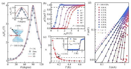 图2. 在100.0 GPa压力下,BKT转变及角度分辨上临界场分析表明,SC-II相仍保持显著的2D特征。