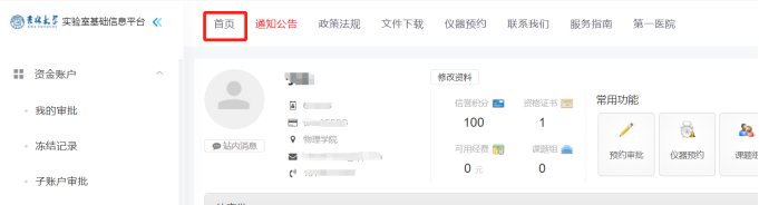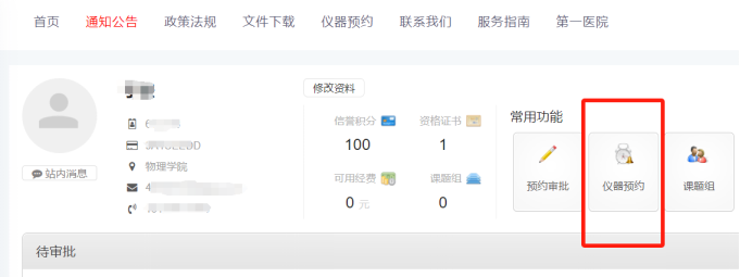 1. 学生用自己账号登陆字母圈 实验室综合管理平台,登陆完成后进入仪器预约项目。