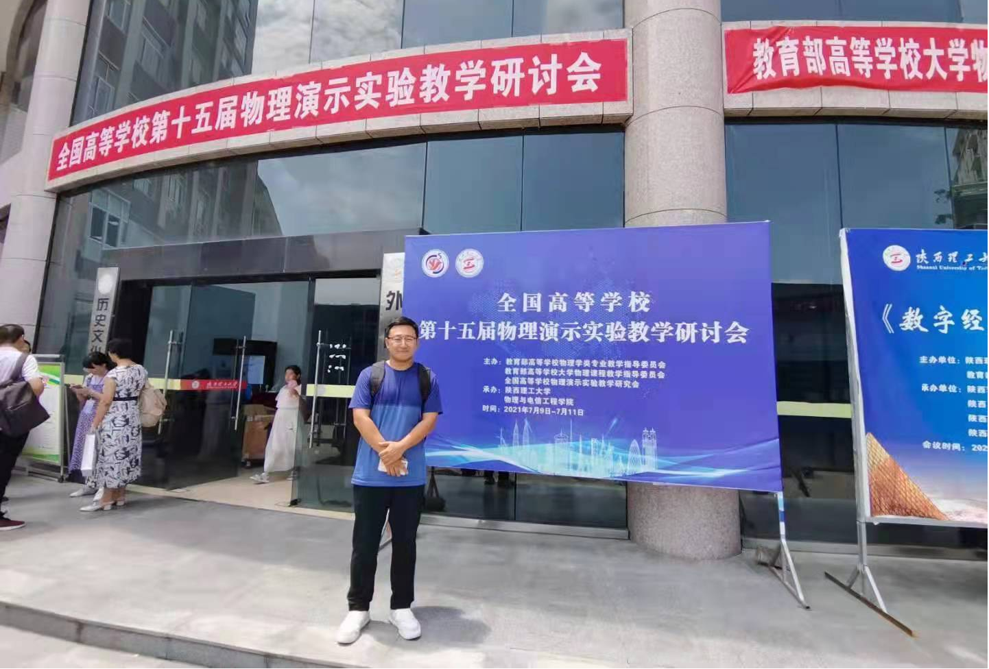 2021年7月9日,高等学校第十五届物理演示实验教学研讨会在陕西理工大学召开,全国20多个省市自治区的60多所高校和科研院所共派出170多位代表参加了本次会议。其中,我院梁桁楠、杨辉两位教师研制的教学仪器在物理演示实验展评中获得一等奖一项、三等奖一项。