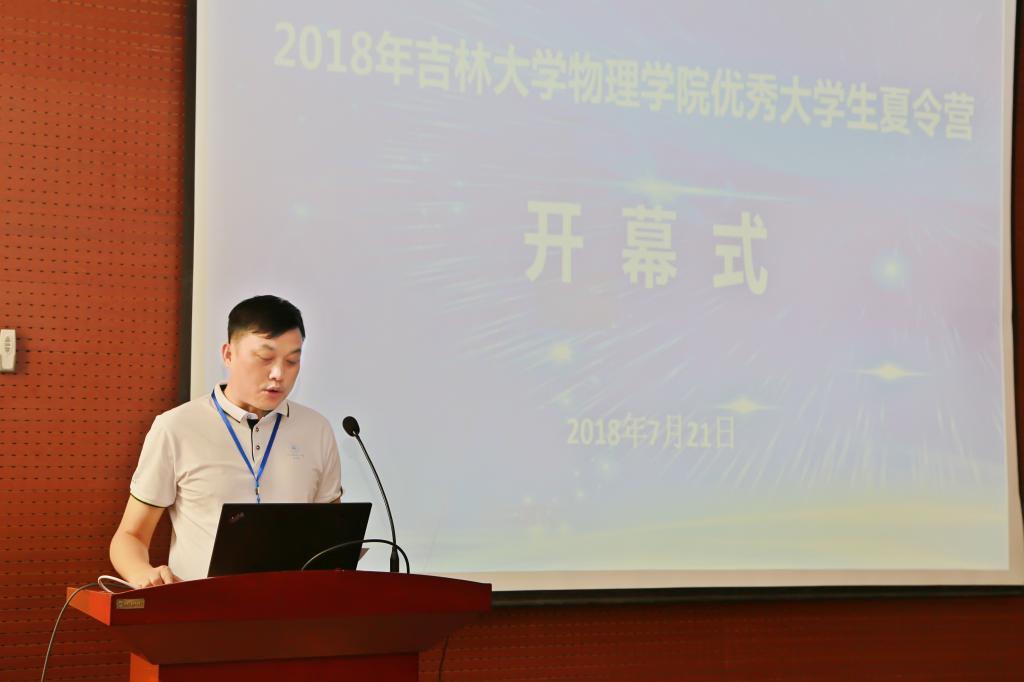院长马琰铭教授致词并宣布开营。他代表全院师生欢迎夏令营营员。马院长作学院总体情况介绍时说,吉大物理有着辉煌灿烂的发展历程。经过几代物理人的奋力拼搏,得到了长足的发展,逐渐形成了“坚韧不拔,争创一流,服务国家,面向世界”的吉大物理精神。在第四次教育部学科评估中,在全国并列 7位。2017 年又历史性地入选国家一流建设学科,全国仅有七所高校的物理学入选;吉大物理具有以人为本的发展理念。学院坚持把培养和造就德智体全面发展、具有国际视野的高素质创新人才作为工作的重心,形成了“价值引领,知识传授,能力提升,人格塑造”的育人理念;吉大物理具有吉大特色的科研优势。学院依托高水平科研平台,面向国家战略需求,形成了以“高压物理”研究为龙头,计算物理、理论物理、光物理、核物理、能源物理等多学科协同发展的科研态势,承担了大批国家任务,产出了系列高水平成果。