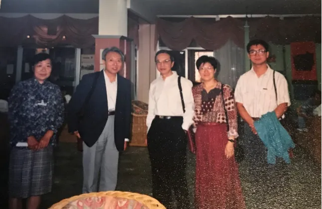 图2 1995年我和黄春晖(左一)、李铁津(左二)、朱道本(中)三位先生、张希教授(右)在意大利参加LB薄膜国际会议。