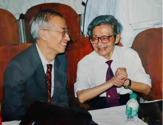 图9 吴式枢(右)与陈佳洱(左)交流