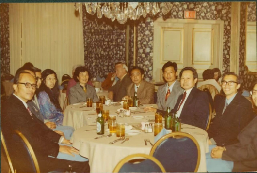 图12 1983年7月,杨振宁(右三)在纽约长岛宴请赴美CEEC成员 右二为陈佳洱
