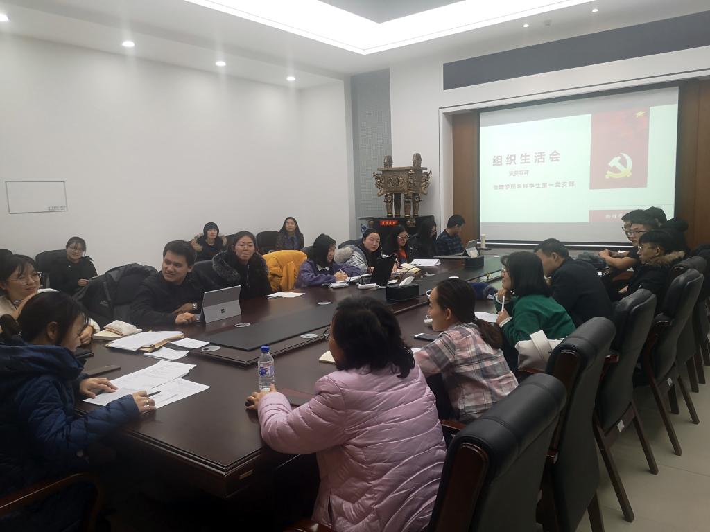 本科生第一党支部于12月13日晚召开了2019年度组织生活会及民主评议党员大会,学院党委书记孟文卓老师列席会议进行工作点评与指导。会议由字母圈