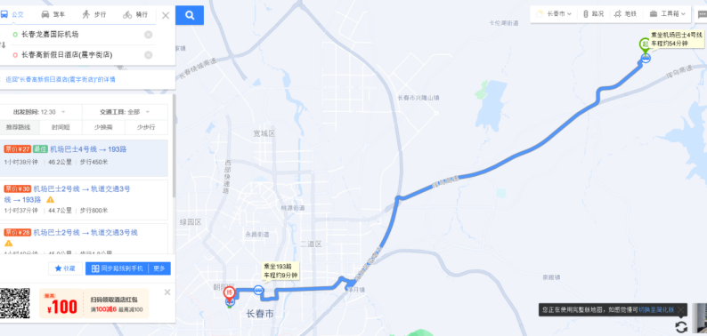 2.乘坐火车到达长春站,公共交通约50分钟;