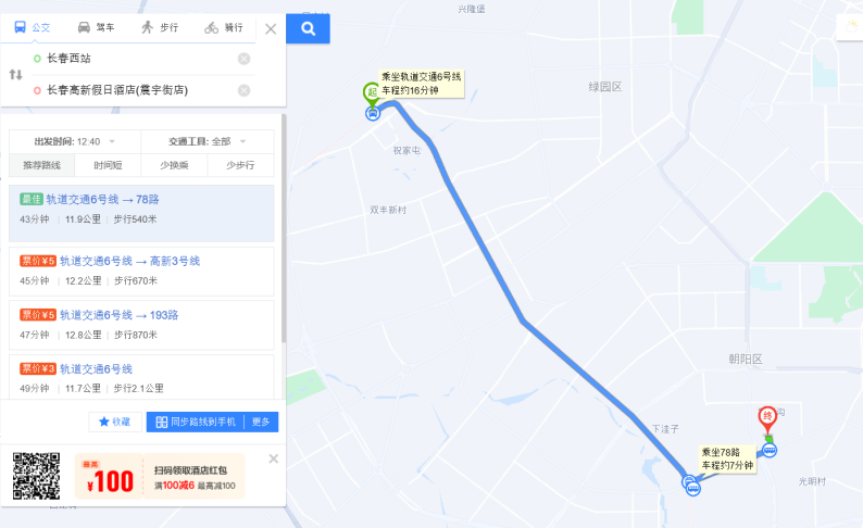 3.乘坐火车到达长春西站,公共交通约50分钟。
