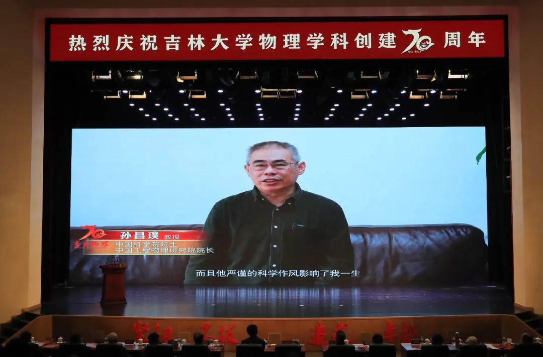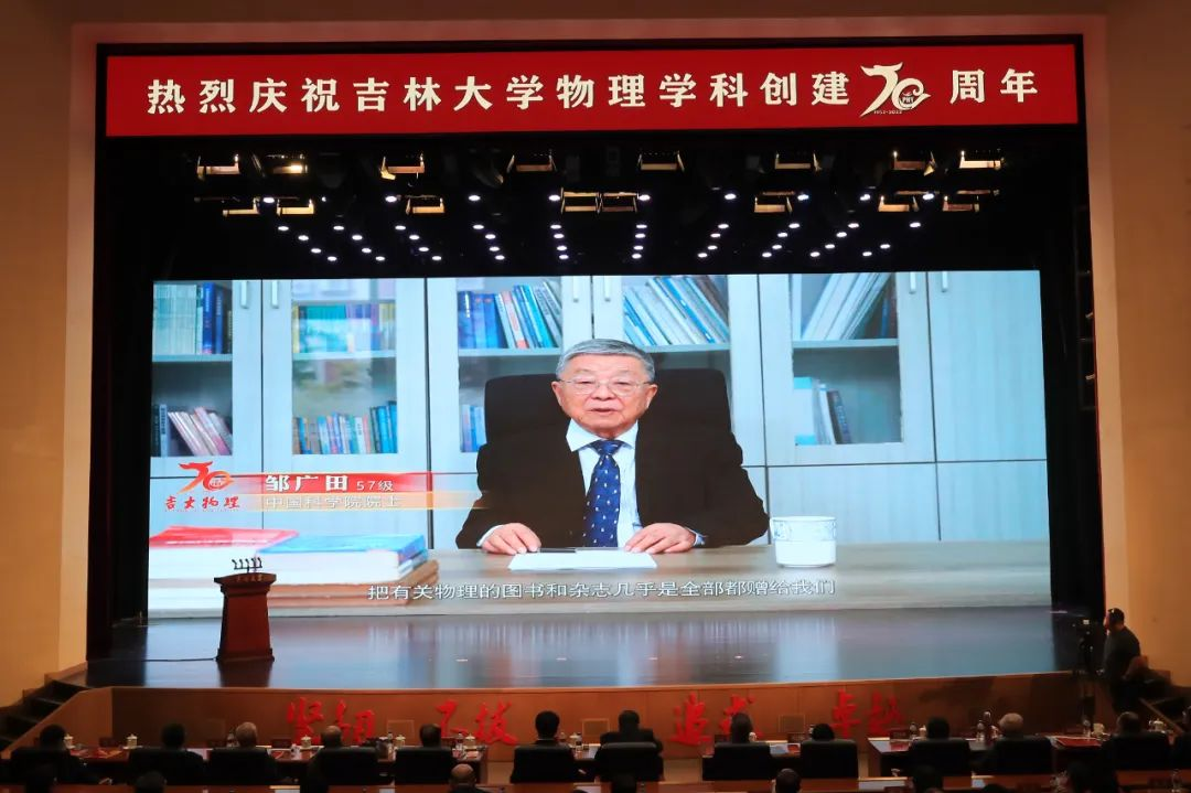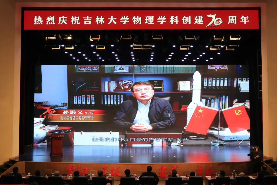 迟力峰、孙昌璞、孙殿义在代表海内外校友发言时,用校友们创作的“诗歌”表达对母校最深沉的热爱和祝福。他们深情回忆了在吉大求学的难忘瞬间和与恩师相处的点点滴滴,他们表示,七十岁,对立志于世界一流学科的吉大物理,恰是风华正茂。今后将不遗余力为母校的建设和发展添砖加瓦,助力母校培养高水平人才、产出高水平成果,为母校的事业贡献力量。