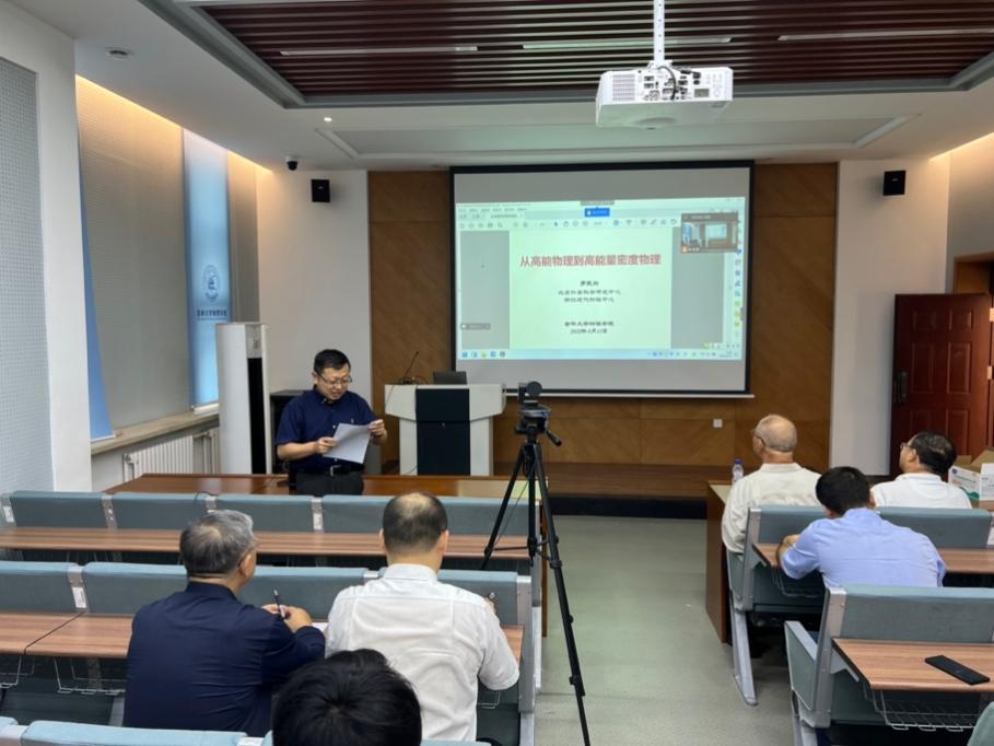 对罗民兴教授和魏苏淮教授的到来表示了欢迎和感谢,向与会师生介绍了两位专家的研究领域和学术成就,分别对他们在高能物理及高能量密度物理和计算半导体物理取得的开创性成果表达了崇高的敬意。