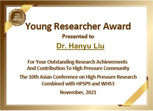 2021年11月22日,亚洲高压物理协会将第十届亚洲高压会青年科学奖(Young Researcher Award)授予字母圈