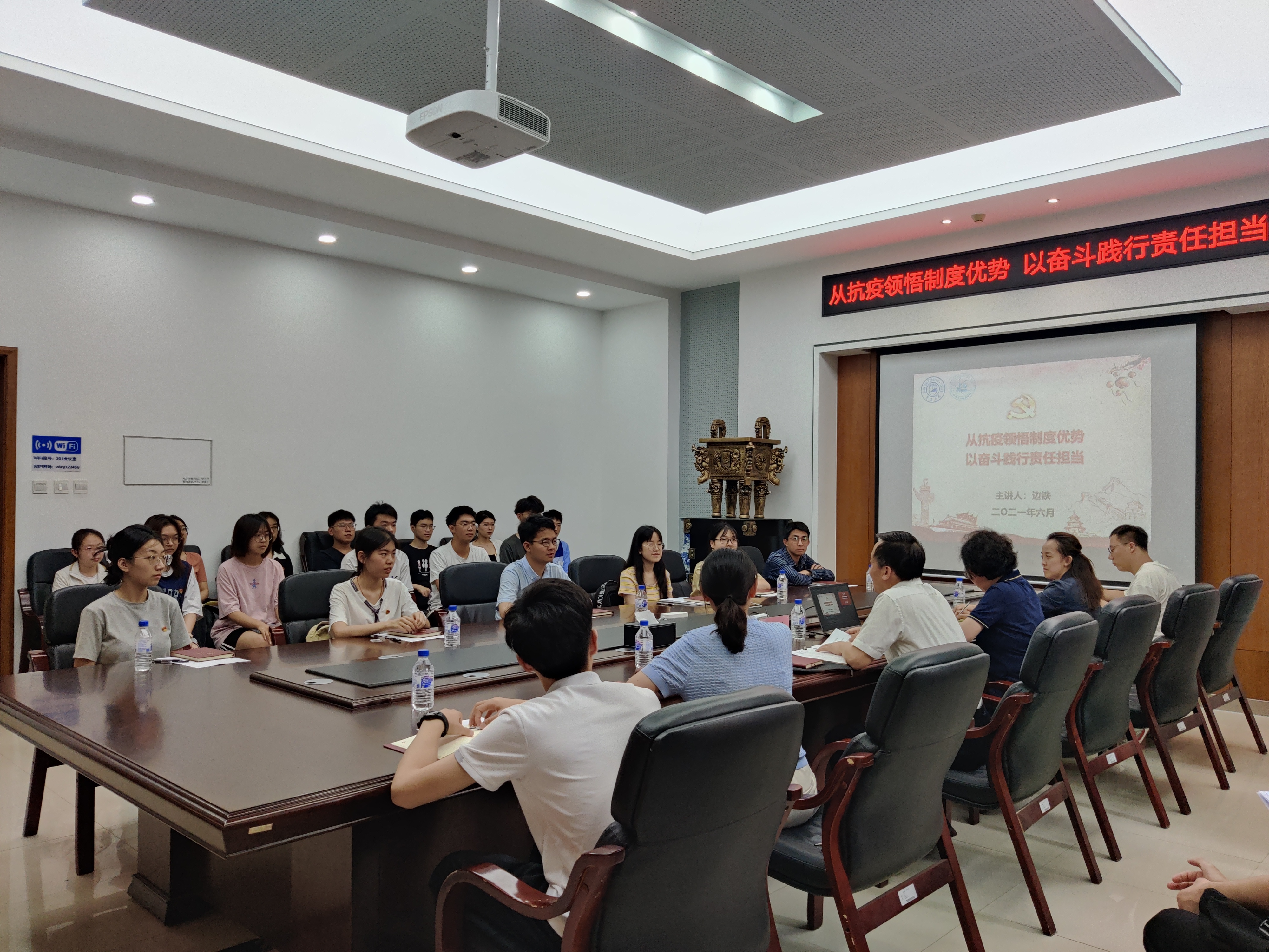 为本科生第一党支部讲授专题思政课,学生党支部书记以及毕业生党员、星火燎原积极分子代表参加,字母圈