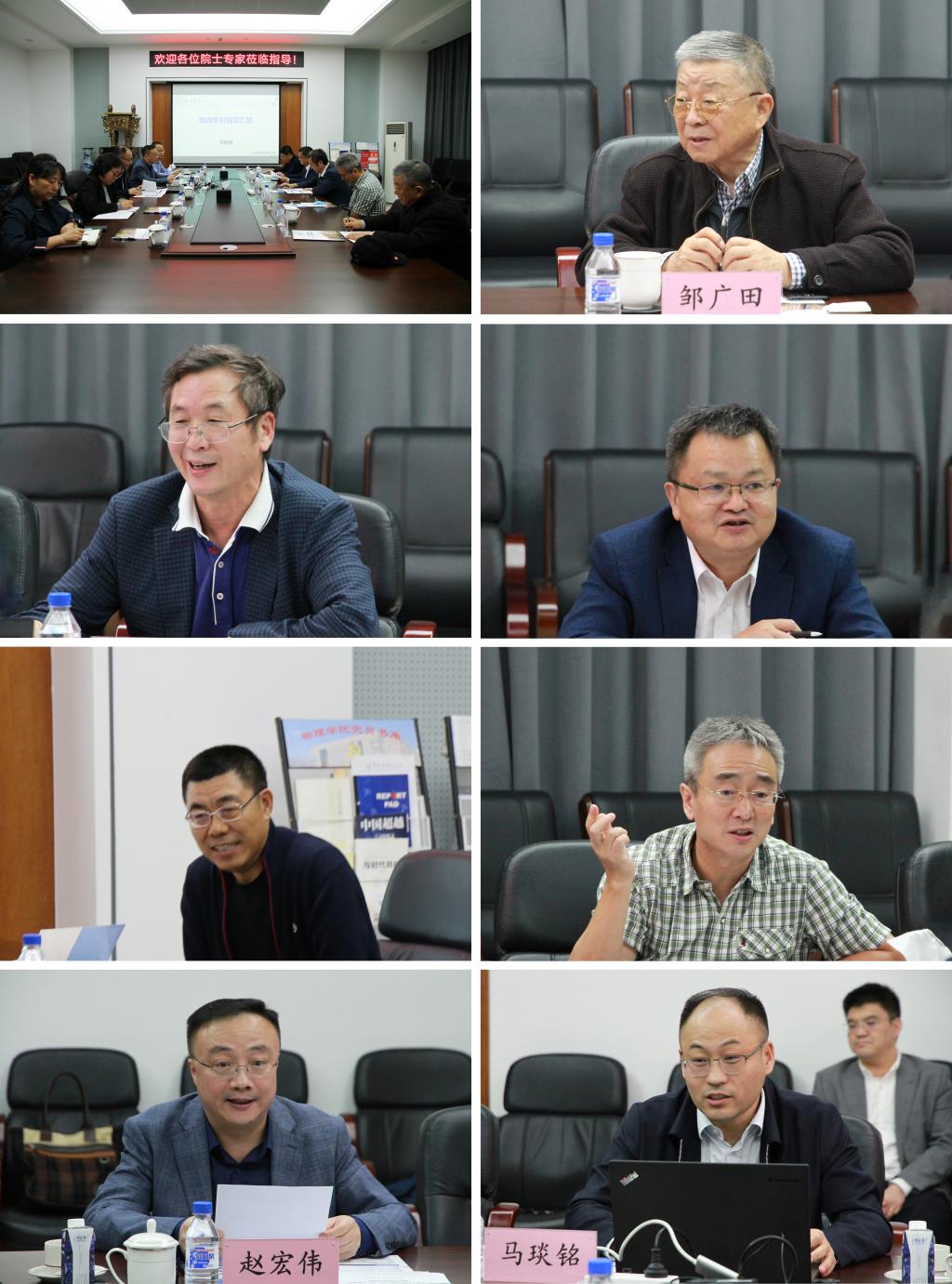 院长马琰铭从学科基本情况、“双一流”建设成效、存在问题和改进措施等方面进行了汇报。与会专家对学院在“双一流”建设期间取得的成绩给予了充分的肯定。一致认为,近年来学院在师资队伍建设、人才培养、教学成果和国际影响力等方面取得了令人欣喜的成绩。特别是,依托科研平台建设,承担大批国家重大科研任务,产出系列高水平研究成果。业已形成以“高压物理”为引领,“计算物理”、“能源物理”、“原子分子物理”等多学科协同发展的态势。专家也提出殷切希望:抓好教学梯队建设,建立稳定、优质的教学团队;积极谋划学科布局,培育新的学科增长点;注重物理学科与东北地方经济和产业发展的精准对接,提升社会服务能力。