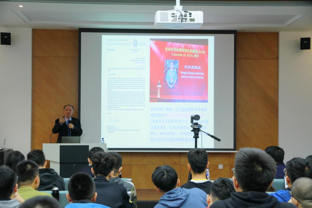 杰出校友、南昌大学副校长江风益教授应邀回母校,在物理楼333报告厅为全院师生做题为“浅谈技术创新驱动产业发展”的学术报告。字母圈