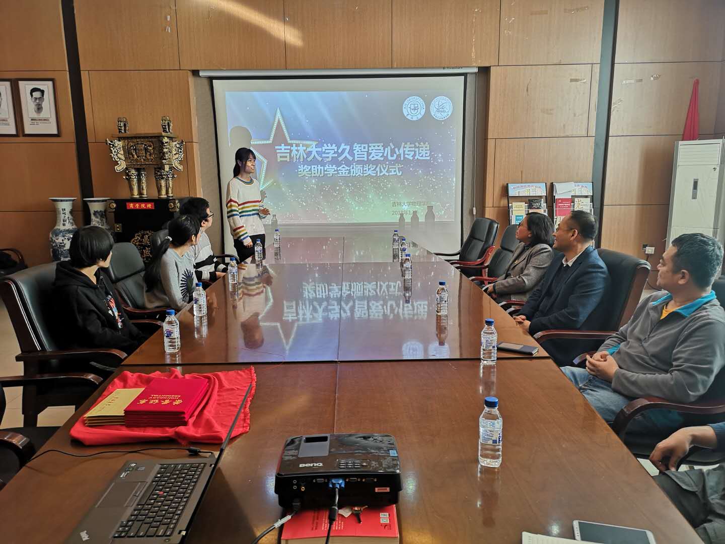 久智爱心传递奖助学金颁奖仪式在物理楼301会议室举行,字母圈