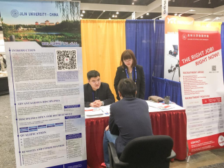 3月5日-8日的APS会议招聘现场,字母圈 在会议中心设立专门招聘展位,吸引了百余名来全球各地的博士后、博士研究生前来咨询、投递简历。我院各位院长、人才工作办公室工作人员就物理学科发展、人才队伍建设、我校人才招聘条件、支持措施、发展平台等方面进行了深入交流与问题解答。