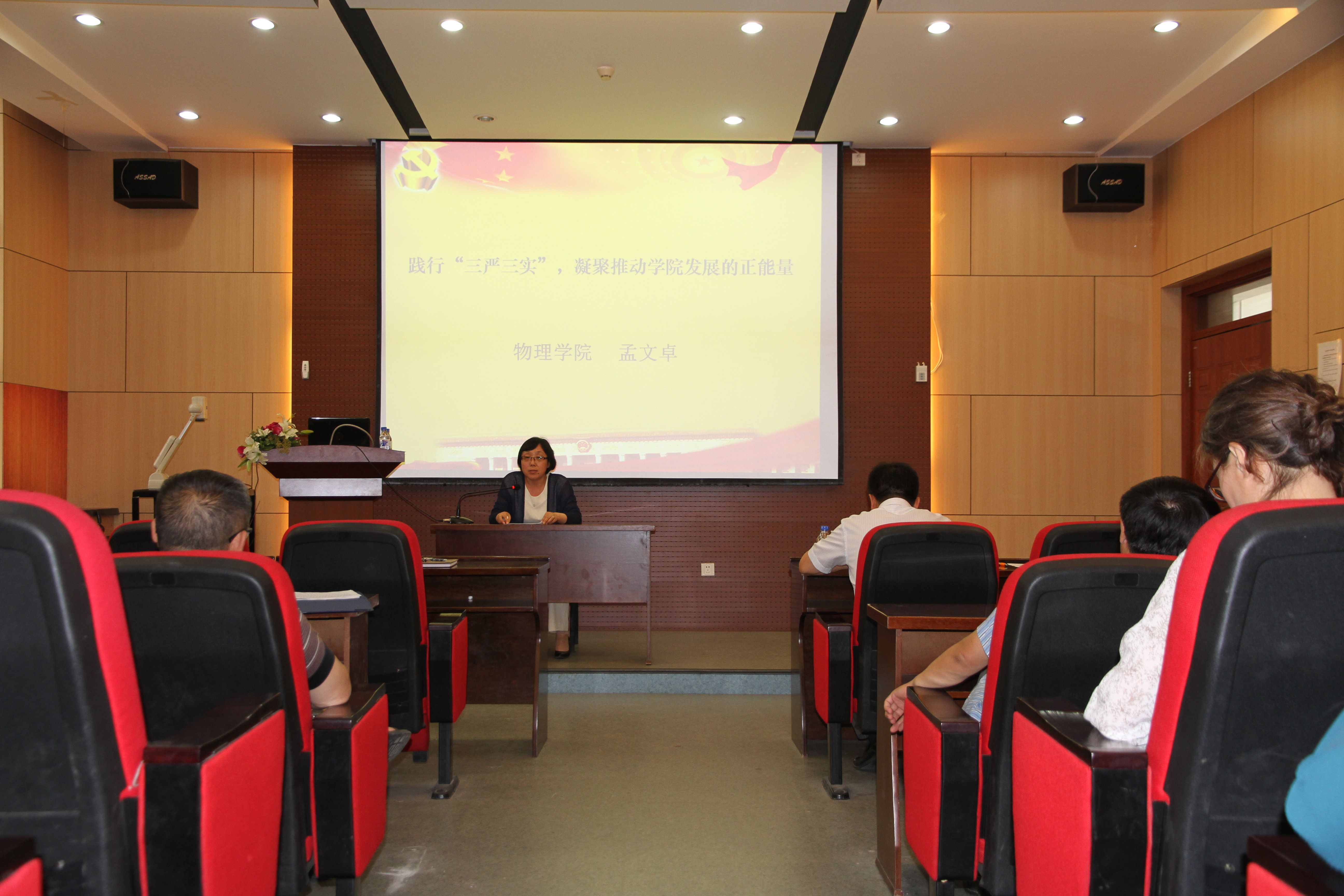 在中心校区物理楼333会议室召开了“三严三实”专题党课暨动员部署会,学院领导班子成员、教工党员、学生党员代表参加,会议由党委副书记孙长轮主持。