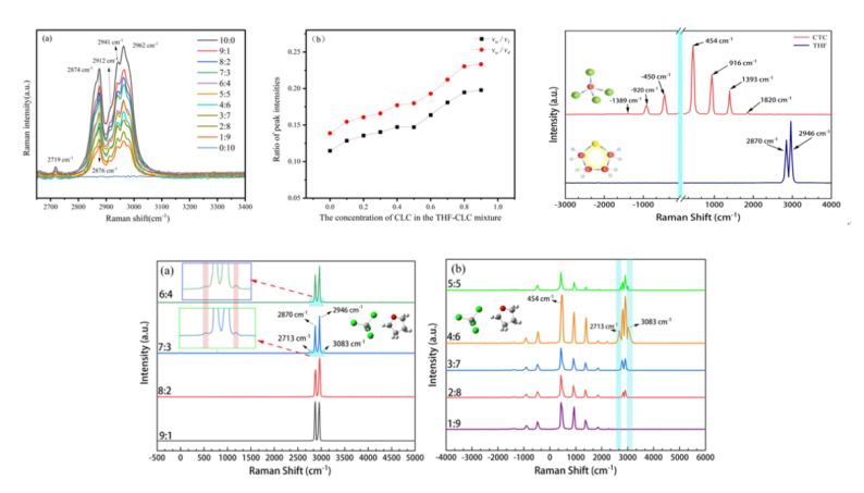 该研究聚焦于THF中C-H伸缩振动受激拉曼散射行为,系统探索了THF在四氯化碳(CTC)中弱氢键增强的FWM效应。在THF和CTC摩尔比为2:1时,氢键的形成促进了种子光子的出现,激光诱导等离子体改善了相位匹配条件,调节了非线性极化率,从而增强了FWM机制。