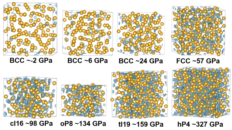 图1. 液态钠(金色)中的非核局域电子(蓝色)