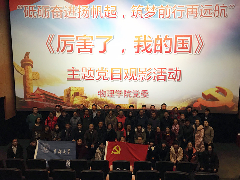 党委在吉大巨幕影城组织了“砥砺奋进扬帆起,筑梦前行再远航”主题党日观影活动,在观影活动开始前,学院党委书记孟文卓为获奖同学颁奖并表示祝贺,鼓励同学们奋勇争先,再创佳绩。随后本科生党支部党员代表及获奖学生与学院全体教工党员观看电影《厉害了,我的国》。