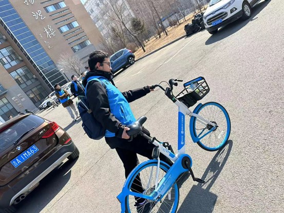 3月3日下午,同学们分成若干个志愿小组,在物理楼和逸夫楼前摆放共享单车,单车距离停放点距离遥远,同学采用手提的方式,将单车放回原处,并将单车内的垃圾带去,灰尘拂去,让干净整齐的小黄和小蓝成为字母圈