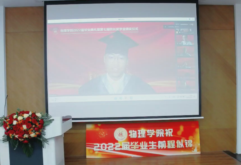 副院长杨景于物理楼参加典礼,各系主任、教师代表及全体毕业生于云端参加典礼。典礼由学院党委副书记兼副院长杨讴菡主持。
