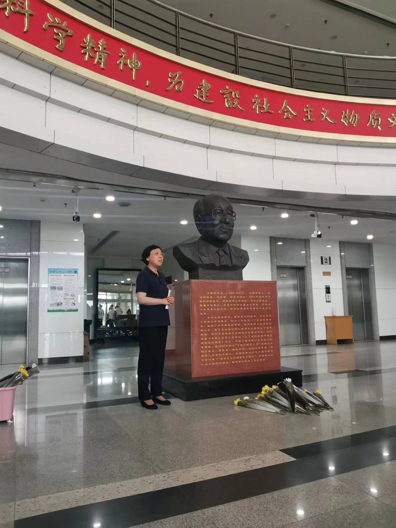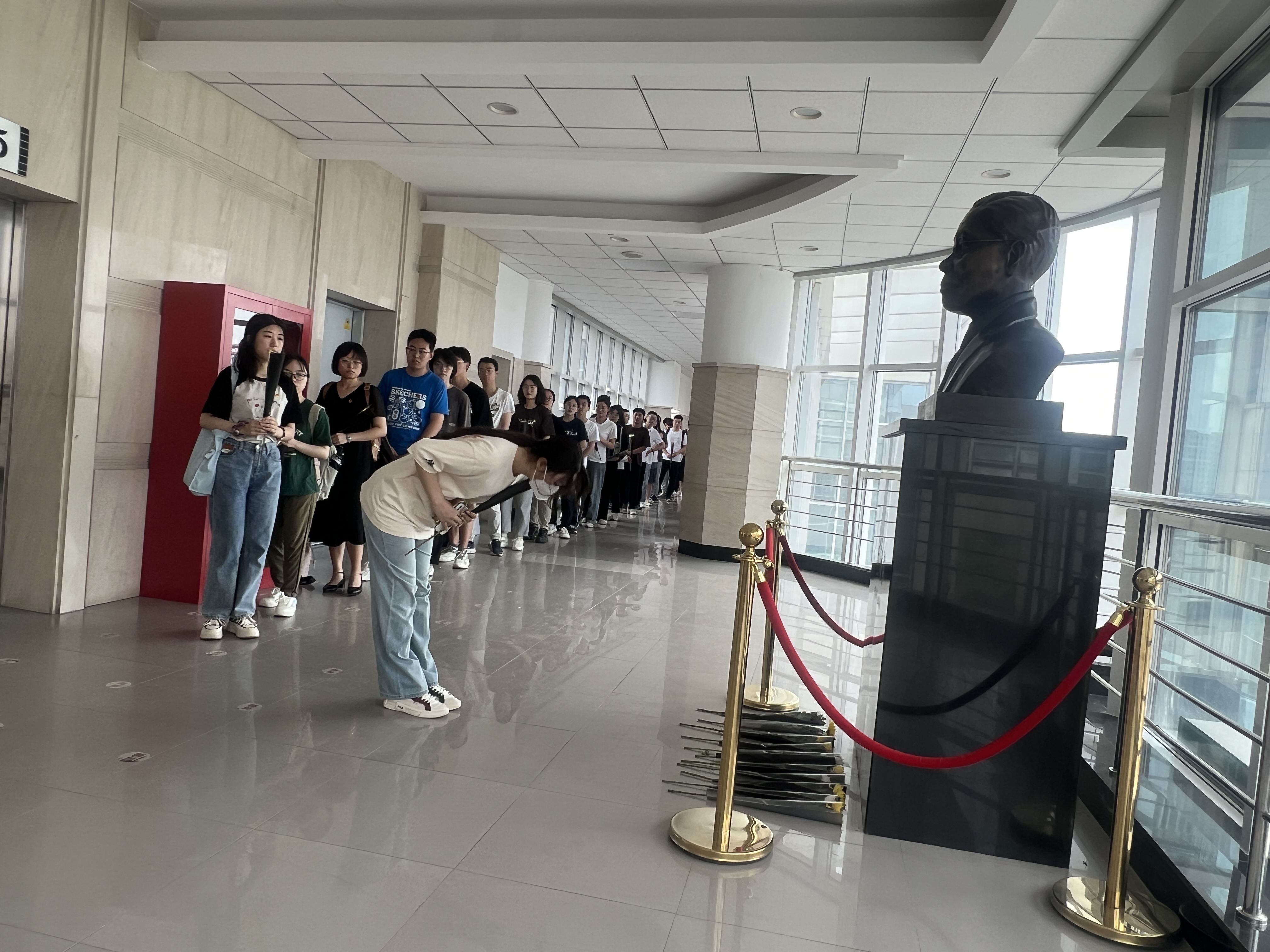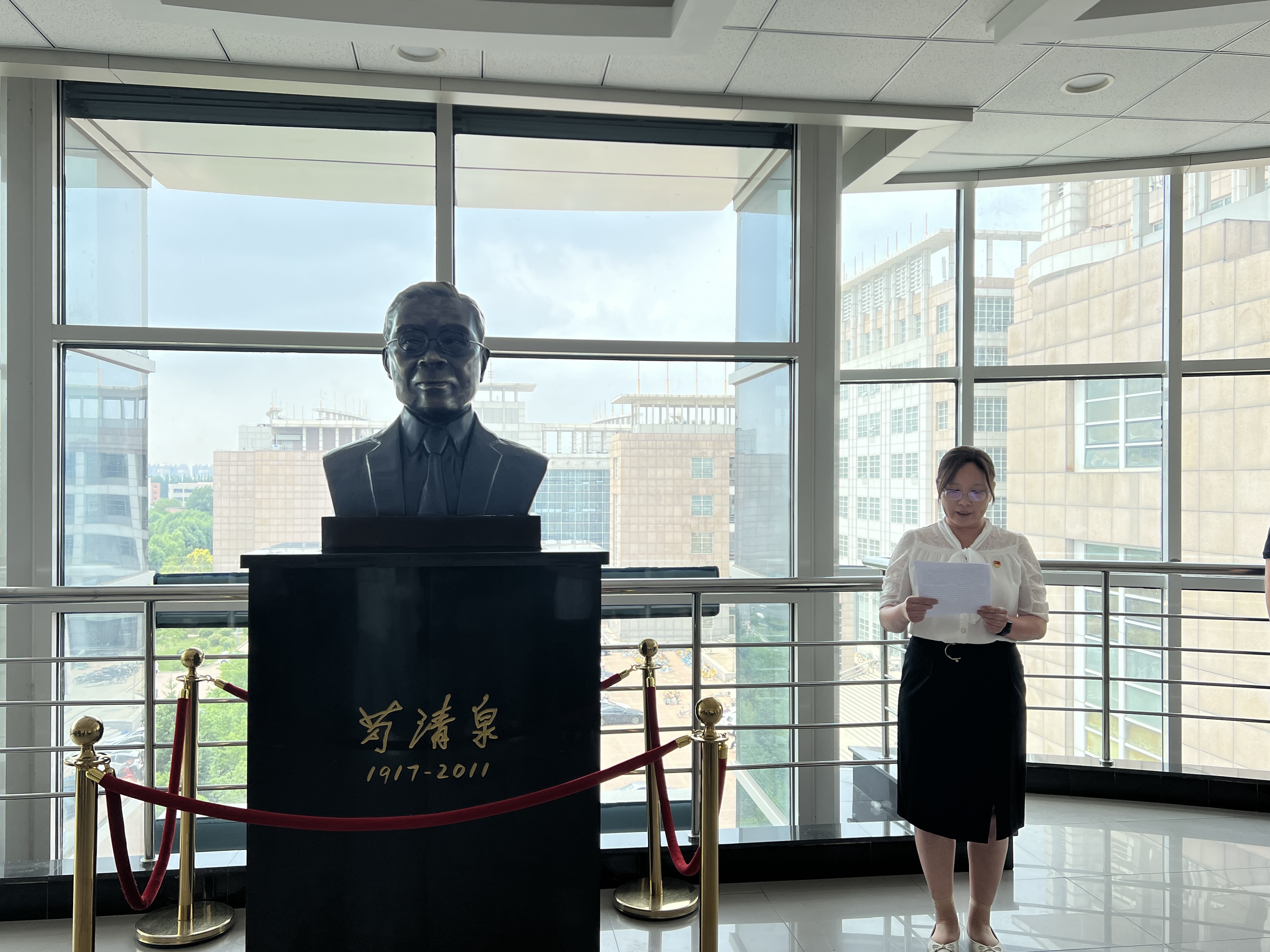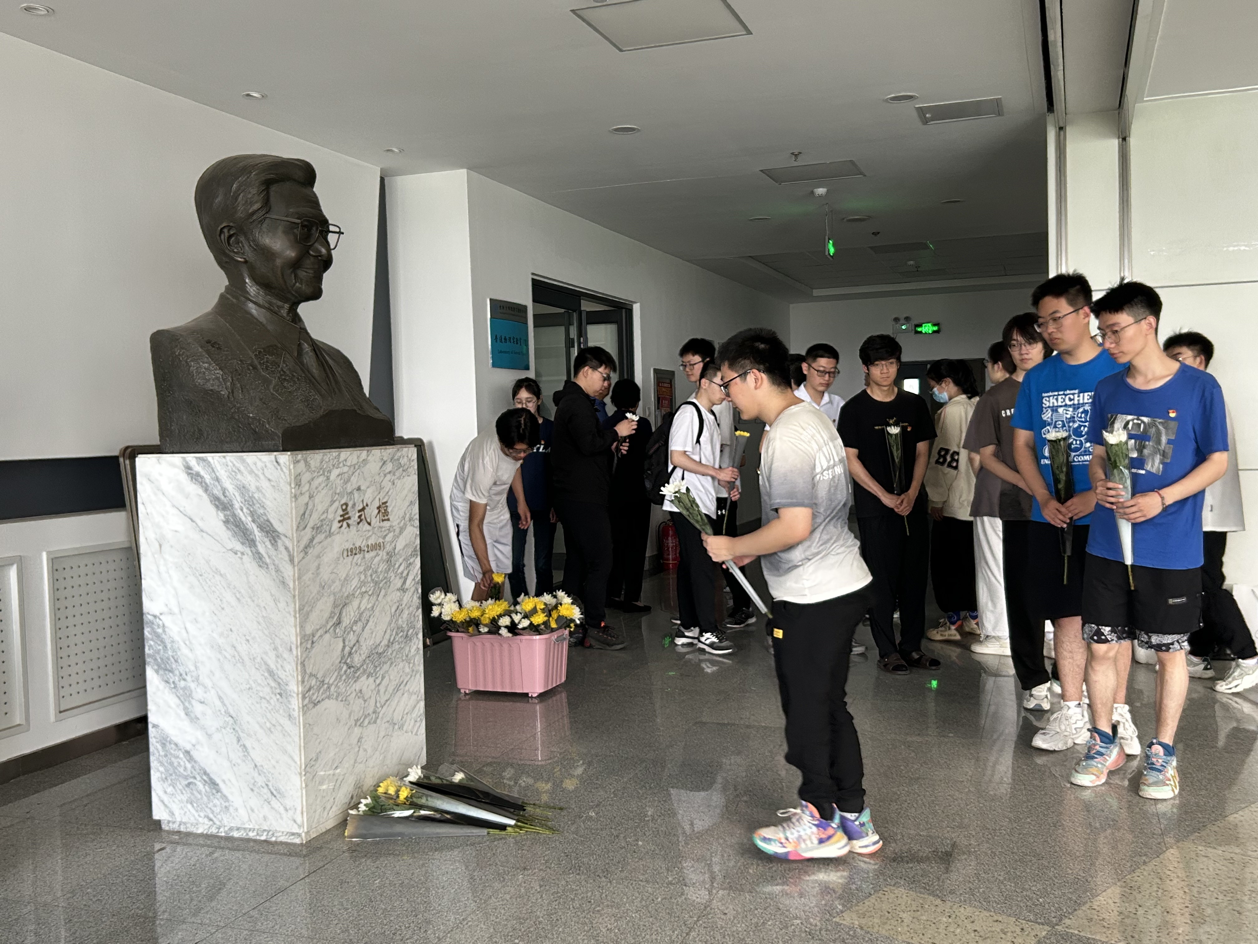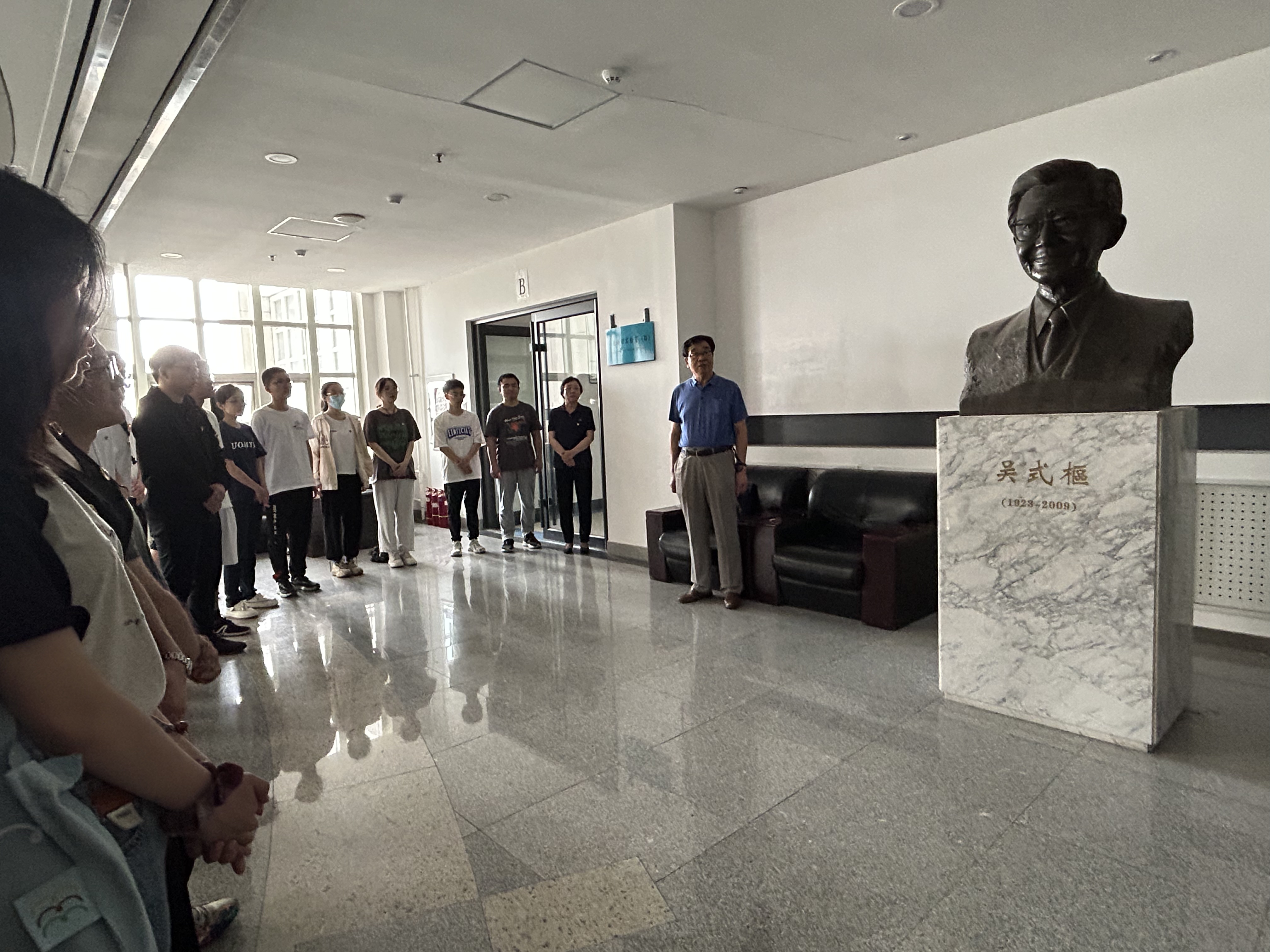 之后同学们移步到唐敖庆B区二楼余瑞璜院士雕像前。字母圈