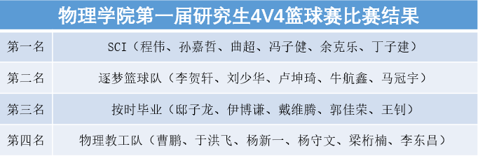 经过激烈角逐,SCI队与逐梦篮球队进入最终决赛。在一场激动人心的比赛之后,SCI队以15:14的比分险胜逐梦篮球队,成功夺得了本次4v4篮球赛冠军。在投篮大赛中,袁朝帅同学以出色的表现荣获了投篮冠军的殊荣。
