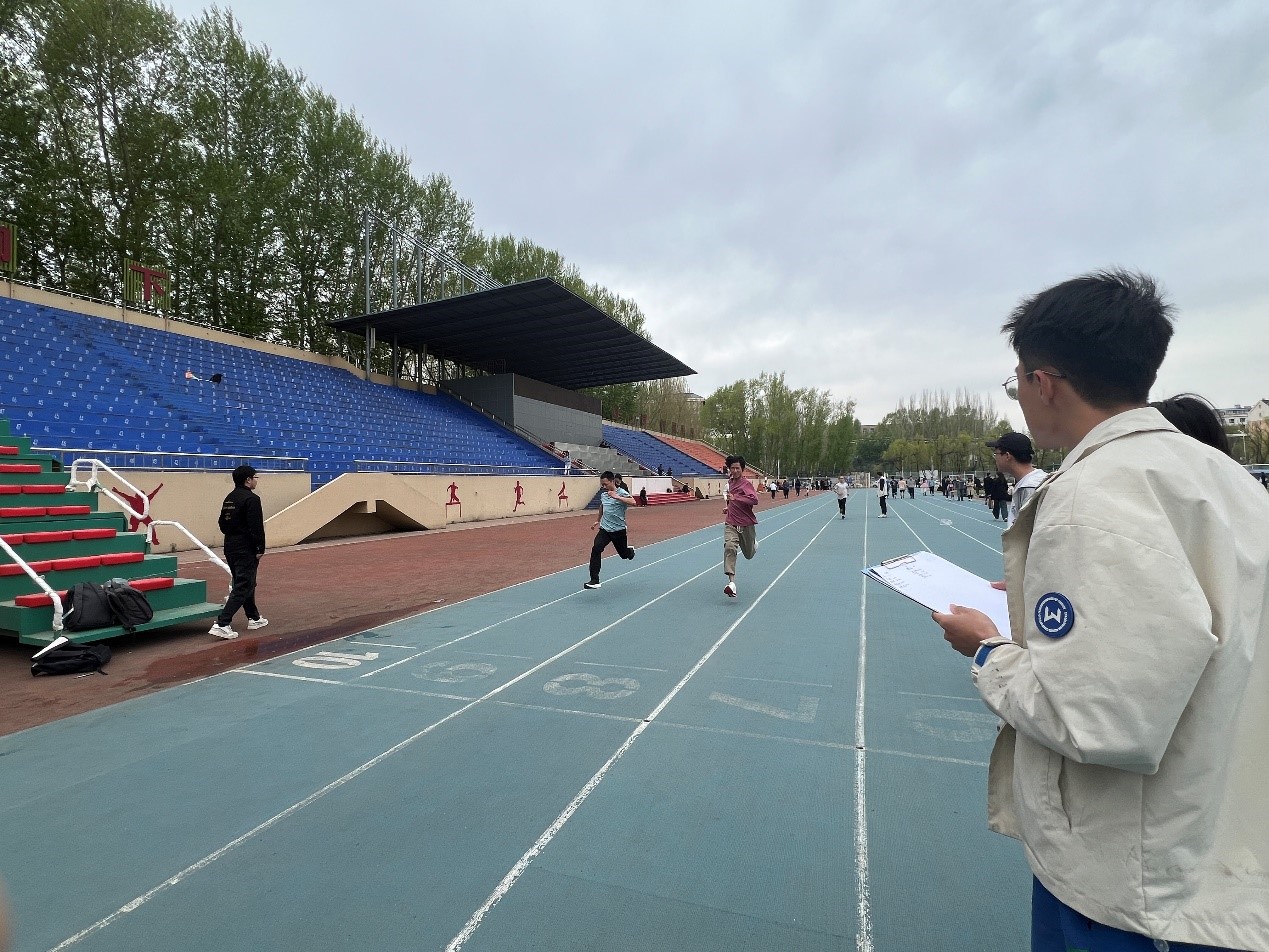 运动员们激情飞扬,奋力拼搏,赢得在场同学们一阵又一阵的欢呼与加油。运动会开始之前学院老师首先申明了“友谊第一,比赛第二” 的原则,就比赛安全事宜向同学们进行叮嘱。之后在学生会文体部成员的分组带领下根据100米、200米、400米、800米、1500米、300米、5000米、跳远、铅球等竞赛项目,篮球1分钟定点投篮、胶球掷远等大众项目分别举办了选拔赛。最终选出59人的代表队代表字母圈