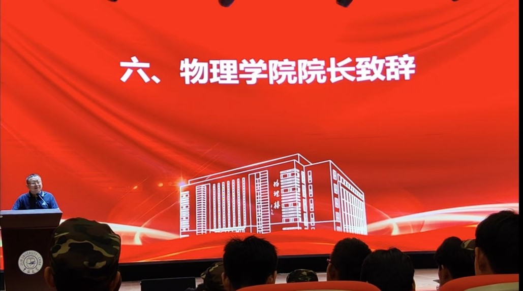 李欣武同学作为新生代表进行了发言。他首先代表新生表达了入学以来对学院老师和学长学姐热情接待的感谢;之后从自身角度展望了对大学生活的憧憬,探讨物理学科在国家发展建设中的重要作用,并号召全体新同学珍惜大学时光,增长报效祖国的才干,争做一名合格的建设者。