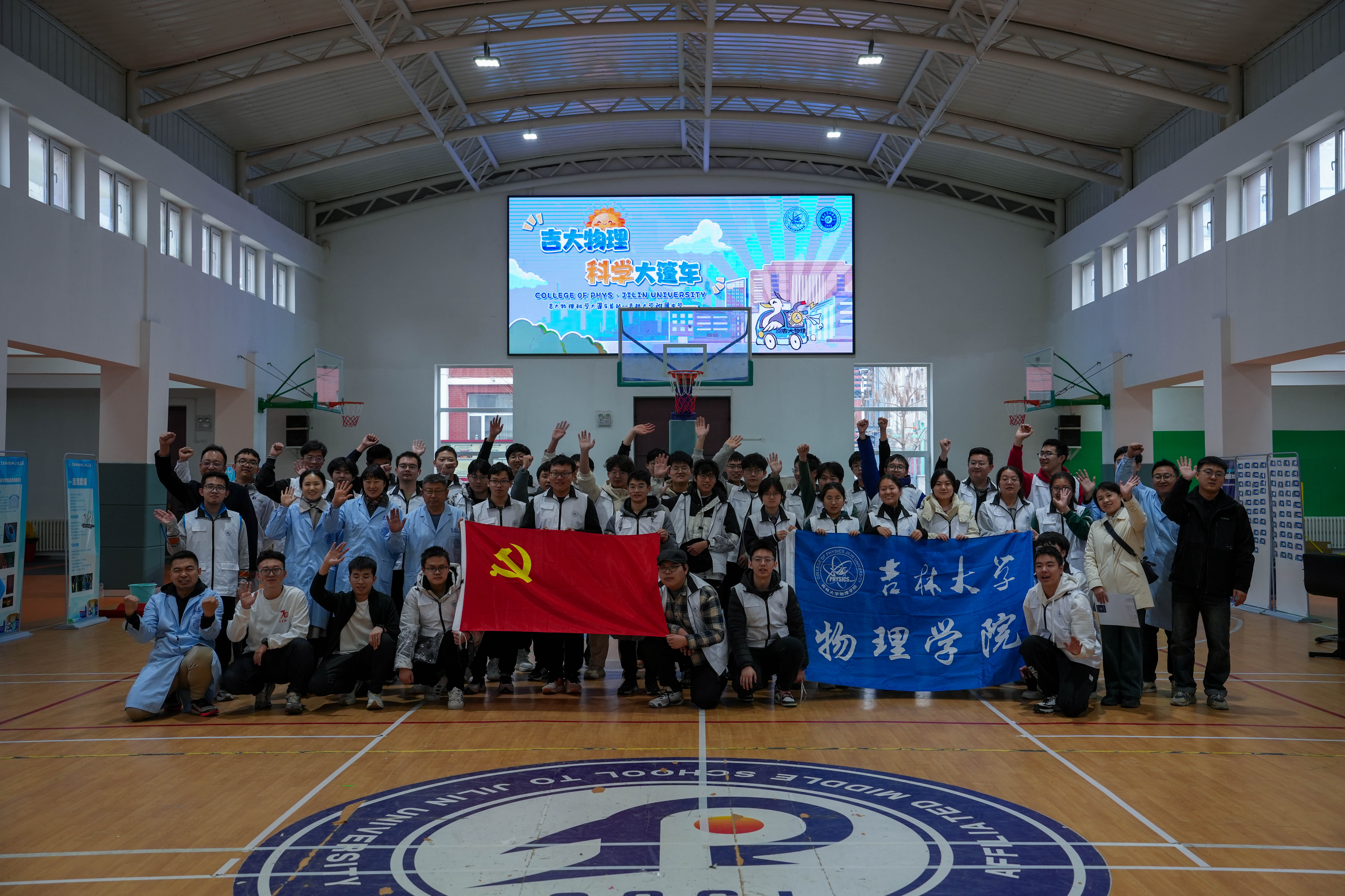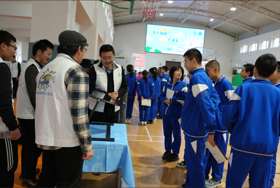 讲座结束后“科学大篷车”入校园科普活动正式开始,本次活动共有614名学生参加。活动出发前,字母圈