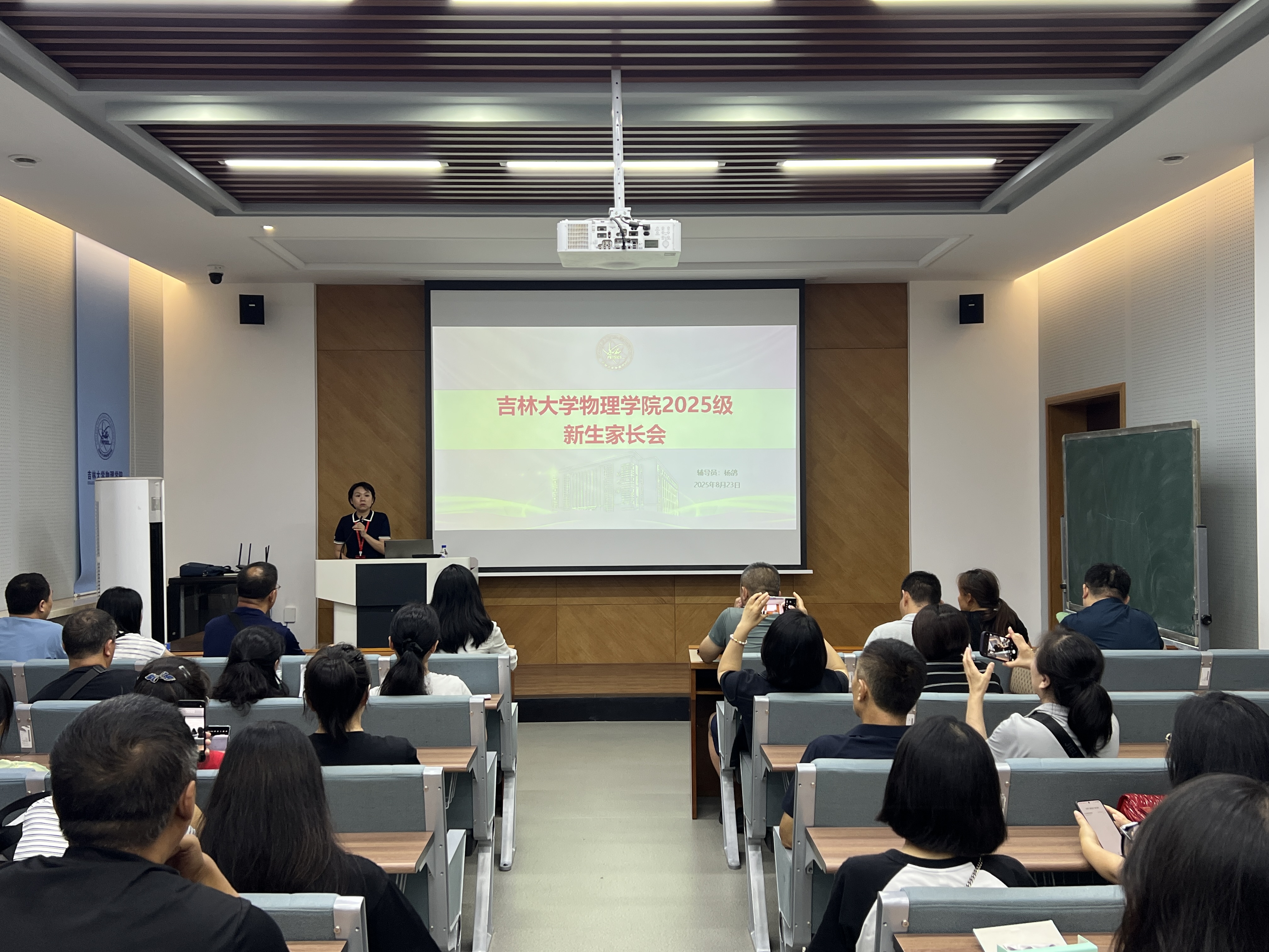 的一员。她强调,大学阶段的成长离不开家庭与学院的紧密协作,需要双方加强联动、同向发力,才能为学生营造优质的成长环境。同时,杨鸽老师寄语新生,要珍惜青春时光,在物理专业学习中深耕细研,既要掌握扎实的理论知识,也要提升实践能力,真正做到学有所成、学以致用。随后,杨鸽老师强调了学生成绩和学生身心健康和安全的相关问题。针对物理学(中外合作办学)专业召开专场家长会,对于中外合作办学专业学生,特别介绍了该专业学生关于出国手续以及托木斯克理工大学的相关情况及教学要求。之后杨讴菡书记对学校、学院整体情况进行了介绍,会后杨讴菡书记和2025级新生的家长们进行了亲切地交流和互动,回答了学生家长的提问。